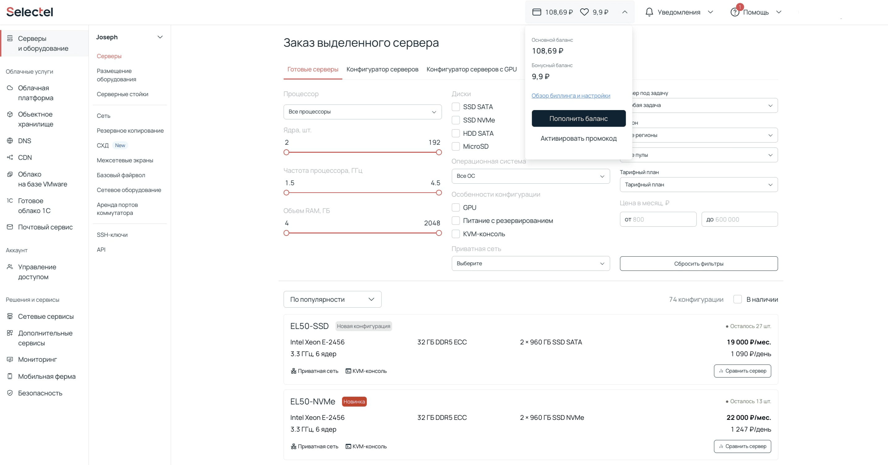 Снижаем цены на серверы каждую секунду. Успейте арендовать популярные конфигурации по низкой цене.